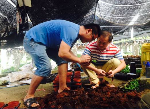 项目负责人与兰花基地管理人员技术交流及栽培技术的取经