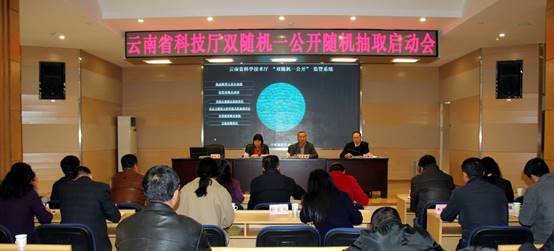 按照《国务院关于“先证后照”改革后加强事中事后监管的意见》、《国务院办公厅关于推广随机抽查规范事中事后监管的通知》,以及《中共云南省委 云南省人民政府关于深化科技体制改革改革的意见》、云南省人民政府关于进一步转变政府职能加强事中事后监管工作的意见》和《云南省省人民政府办公厅关于加快推进双随机一公开监管工作的通知》作出的相关工作部署和要求,在省科技厅“双随机一公开”监管工作领导小组的领导下,省科技厅如期完成了《云南省科技厅开展随机抽查规范事中事后监管工作的实施方案》、《云南省科技关于“双随机一公开”监管工作的实施细则》,“云南省科技厅随机抽查事项清单”及“2016年度双随机一公开检查工作方案”的制定,以及省科技厅监管对象名录库和执法检查人员名录库的建立,于2016年12月7日下午成功召开了“双随机一公开”监管对象和执法检查人员随机抽取启动会。厅特邀监察员秦太峰同志应邀参会并启动“省科技厅随机抽取系统”。