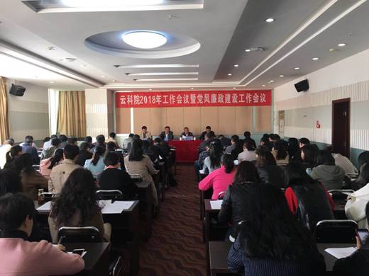 胡启相副院长(副书记)在会上作云科院党委2017年度党建暨党风廉政建设工作总结及2018 年工作要点报告,对2017年云科院党委的各项工作进行了全面总结,对2018年的工作思路和要点作了安排和部署。胡启相副院长(副书记)表示,2017年,云科院党委在省科技厅党组的领导下,按厅机关党委的具体部署和要求,围绕主体责任和监督责任的充分发挥,以开展“两学一做”学习教育为重点,切实加强党的思想、组织、作风和制度建设,进一步提高党员干部队伍整体素质,各项工作取得新成效,为推进云科院改革和发展提供了有力保障。2018年,云科院党委将以党的十九大精神为指导,更加紧密地团结在以习近平同志为核心的党中央周围,在省委省政府和科技厅党组的领导下,保持坚强政治定力,不忘初心、继续前进,开拓创新、扎实工作,在党建暨党风廉政建设各项工作上取得新的成绩。