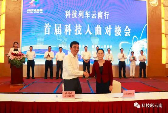 省科技厅党组书记李松林与曲靖市人民政府市长董保同签订了省科技厅与曲靖市人民政府合作框架协议;曲靖市人民政府分别与中国技术交易所、中国无人系统产业联盟、北京能源协会、中关村智慧环境产业联盟签订合作协议。曲靖市40家企事业单位分别与高校、院所、院士及专家签订技术合作或院士(专家)工作站建站合作协议。共有79个项目对接成功,签约总投资86亿元人民币。