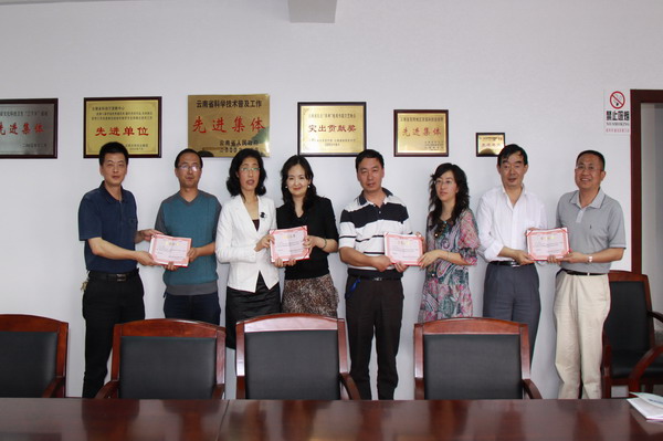 图2:中心领导为获表彰为2009年先进工作者称号的职工颁发证书