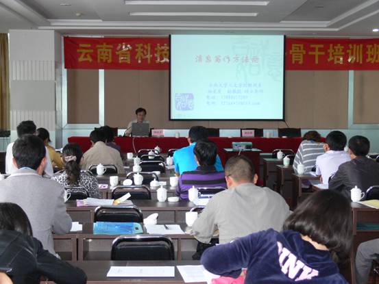 为深入贯彻中共云南省委宣传部、云南省科技厅等七部门《关于进一步加强科技宣传工作的实施意见》,切实加强对建设创新型云南行动计划取得的成就及“十二五”科技工作方针、政策和战略部署宣传,提升云南科技新闻的宣传效果和科技宣传队伍的整体素质,为做好云南科技宣传报道“练内功”。云南省科技宣传队伍业务骨干培训班于2012年7月19日在昆明成功举办。