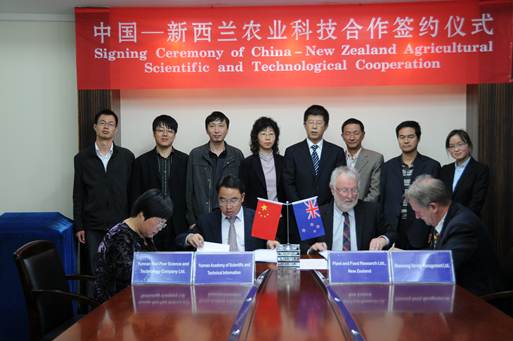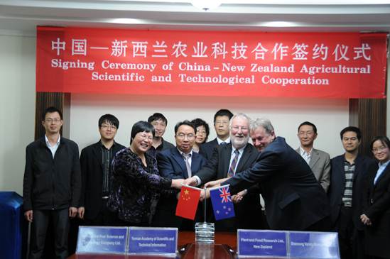 为加强我省与新西兰在农业领域科研与技术转移合作,在昆明搭建面向中国和东盟国家的农业科技研发和技术转移平台,2012年11月4日,云南省科技情报研究院、云南红梨科技有限公司与新西兰植物与食品研究公司、新西兰神农品种管理公司四方在省情报院举行了农业科技合作协议签署仪式。四方将围绕中国和新西兰农业领域的技术转移、生产技术管理、技术培训、新品种引进和农业新技术等方面开展合作。省情报院马敏象副院长(主持工作)、邬平副院长及有关部门人员参加了签约仪式。