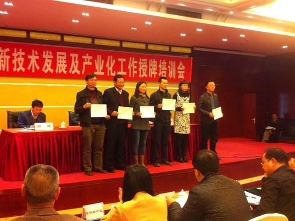 王泽华院长代表云南省科学技术发展研究院,参加了2013年12月13日在昆明经贸宾馆举行的“2013年云南省高新技术发展及产业化工作授牌培训会”,并作为获得2013年度国家中小企业公共技术服务机构补助资金项目的28家单位的代表上台领取证书。