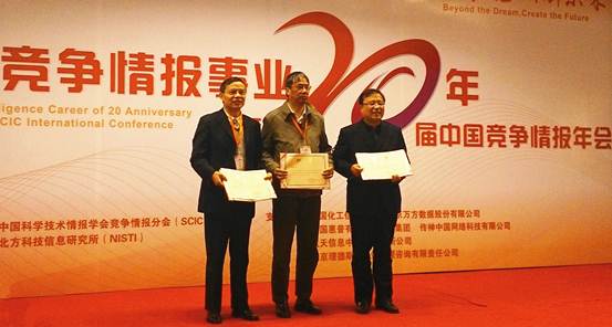 在本次年会上,云南省科技情报研究院竞争情报中心获得了大会颁发的“最佳竞争情报实践团队奖”。竞争情报中心彭靖里研究员发表的《对我国实施竞争情报应用示范工程的回顾及反思》和《对中国经济发展中产能过剩现象的竞争情报解释》两篇论文分别获得会议论文评选的一等奖和三等奖。