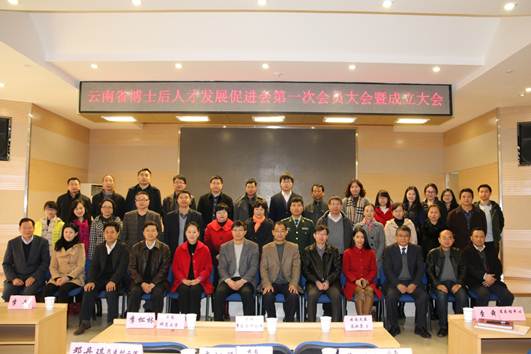 2014年12月9日,云南省博士后人才发展促进会第一次会员大会暨成立大会在省科技大楼召开,28家会员单位领导参加会议。省人社厅副厅长徐文波、省博管办主任李玉红、省民政厅民间组织管理局副处长李建军出席会议并分别讲话。大会审议通过了章程,选举产生了领导班子。