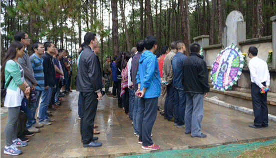 为纪念中国人民抗日战争暨世界反法西斯战争胜利70周年,全体人员还赴龙陵县参观了松山战场遗址,向抗日英烈们敬献花篮,鞠躬默哀。松山战役是整个滇西抗战中时间最长、规模最大的一次战役,也是滇西抗战中的关键性战役,是中国从战略防御转入战略反攻阶段标志性战役,被美国西点军校作为二战中山地丛林攻坚战经典战例录入教材。