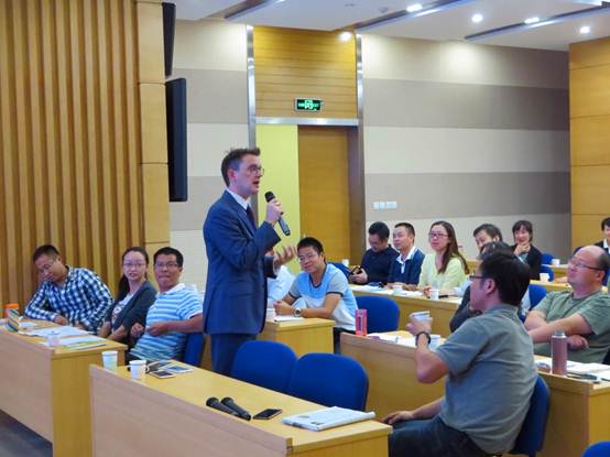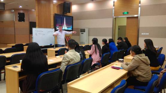 本次培训聘请了来自英之航国际英语学校的教学总监Robert Edward Murph(英国)和培训讲师Luan Hanratty(英国)作为授课老师。培训为全英文授课,由四个阶段组成,即:基础口语训练、科技英语写译训练、主题性语言训练和国外科技发展情况研讨。课程内容涉及日常办公英语口语和写作、英语语法、科技英语译作运用,包括:函电、邀请函、书信、邮件、合同草拟;对欧美等主要发达国家的政治、经济、历史、文化、地理、社会、科技发展及教育等情况作出了较为详细的介绍;以3D打印、《中国制造2025》、“互联网+”、风险投资等当下热点领域为主题展开讨论。