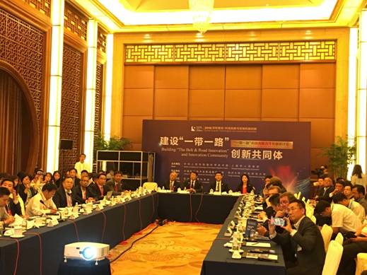 “一带一路”科技创新合作专题研讨会由中国科学技术部和上海市人民政府共同主办,以建设“一带一路”创新共同体为主题,旨在推动政策沟通,设施联通、贸易畅通、资金融通、民心相通的关键支撑和重要先导,强化“一带一路”沿线国家多边合作机制,发挥浦江创新论坛多边合作平台作用。中国科技部阴和俊副部长和蒙古国教育文化科技体育部巴特苏里部长作主旨演讲。研讨会邀请了德国、泰国、老挝、尼泊尔四位专家和中科院、中国科技发展战略研究院、云南省科学技术情报研究院、北京长城企业展业研究所四位专家作了主题演讲。马敏象院长作了“中国与南亚科技创新合作实践与模式”的主题演讲,介绍了近年来我国与南亚开展科技创新合作、技术转移的实践案例,提出了“搭建平台、沟通渠道、建立关系、促进合作、实现共赢”的区域间创新合作机制与模式的建议。