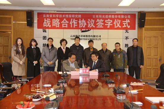 为发挥好国际科技合作在面向南亚东南亚辐射中心建设中的重要作用,充分利用中国—南亚技术转移中心平台和机制,深化与巴基斯坦的科技合作,主动服务和融入国家“一带一路”战略,2017年1月4日,云南省科学技术情报研究院马敏象院长与云南阳光道桥股份有限公司荀家政董事长分别代表双方签署了战略合作协议,旨在共同与巴基斯坦开展科技创新合作与技术转移工作。