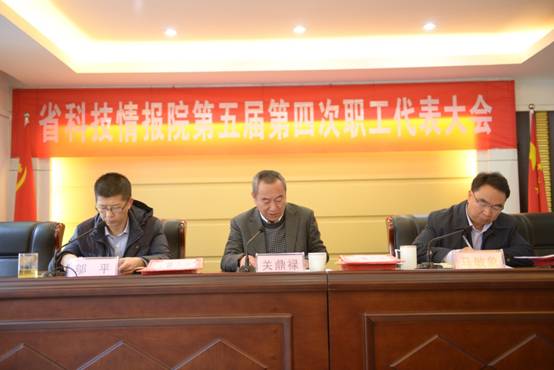 2017年2月28日上午,省情报院召开第五届四次职工代表大会。省科技厅党组成员、副厅长关鼎禄出席大会并作了讲话。邬平副院长主持了全院职工大会。职代会审议通过了马敏象院长作的《云南省科学技术情报研究院第五届四次职工代表大会工作报告——2016年工作总结暨2017年工作重点》、财务部杨显聪主任受马敏象院长委托作的《云南省科学技术情报研究院2016年财务工作报告》。在职代会上,邬平副院长作了《云南省科学技术情报研究院第五届四次职工代表大会提案工作报告》。