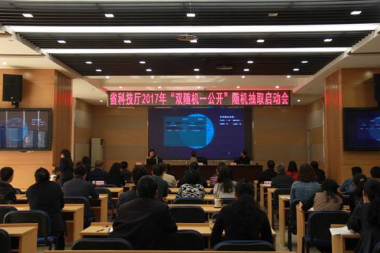 2017年4月20日上午,省科技厅在3楼多功能会议室召开“双随机一公开”随机抽取启动会,通过随机抽取软件,顺利从140家科普教育基地、9家实验动物管理单位、403家科技计划项目承担单位中,随机抽出21家单位和44名执法人员,有效支撑了省科技厅2017年“双随机一公开”监督检查工作的开展。