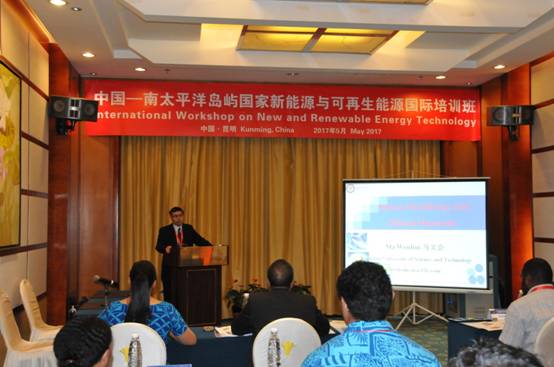 由科技部支持,科技部国际合作司主办,云南省科学技术情报研究院和巴布亚新几内亚大学承办的“中国—南太平洋岛屿国家新能源与可再生能源国际培训班”于2017年5月11日至14日在昆明成功举行。来自巴布亚新几内亚、汤加、萨摩亚、瓦努阿图等南太平洋岛屿国家的政府相关部门官员、大学和科研机构的学员参加了培训班。省情报院马敏象院长出席了培训班的开班仪式并致辞,巴布亚新几内亚技术大学副校长奥拉·瑞纳吉先生代表学员发言。