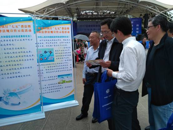 2017年5月20日,以“科技强国 创新圆梦”为主题的2017年云南省科技活动周在玉溪市聂耳文化广场正式启动。根据《云南省科技厅关于开展法治宣传教育第七个五年规划(2016—2020年)》安排,为扎实做好省科技厅法治宣传教育和“七五”普法工作,省科技厅机关服务中心结合科技活动周活动安排,在玉溪市聂耳文化广场组织开展云南省科技厅“七五”普法暨科技法律法规宣传示范活动。