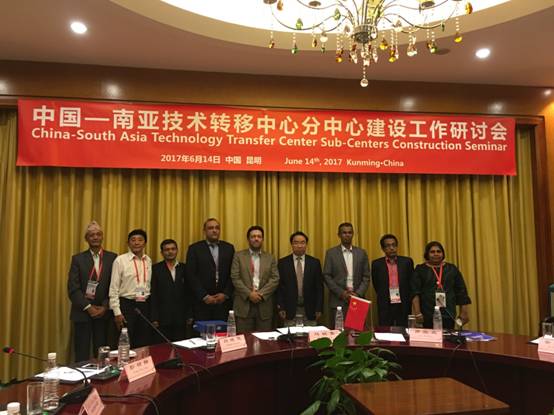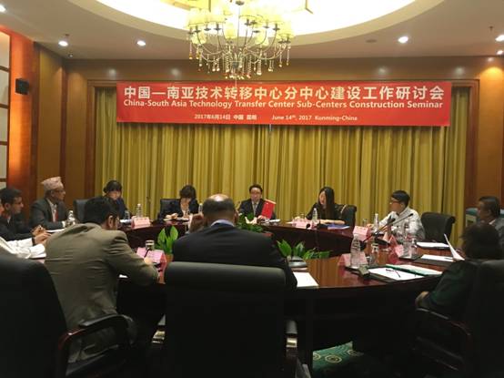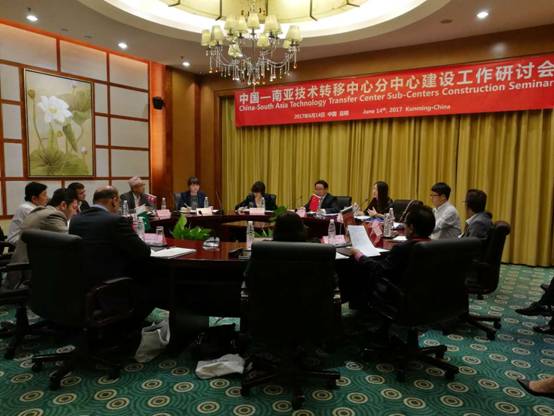 为推进中国-南亚技术转移中心与南亚国家各分中心建设工作,在2017南亚东南亚技术转移对接洽谈会期间,中国-南亚技术转移中心于2017年6月14日在昆明举行工作研讨会。本次研讨会由中国-南亚技术转移中心副主任、云南省科学技术情报院院长马敏象主持,尼泊尔、巴基斯坦、斯里兰卡三个分中心的代表参加了会议。