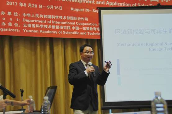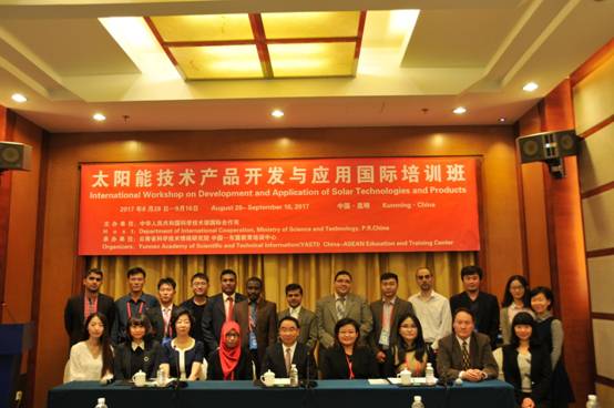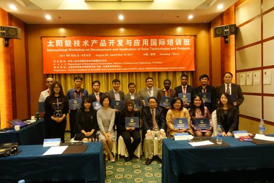 由科技部国际合作司主办,bet36体育娱乐官网组织管理,云南省科学技术情报研究院(中国—东盟教育培训中心)承办的太阳能技术产品开发与应用国际培训班于2017年8月28—9月16日在昆明成功举行。本次培训班为期20天,来自埃及,印度尼西亚,伊朗,蒙古,尼泊尔,尼日利亚,朝鲜,巴基斯坦,斯里兰卡,泰国10个国家的企业、大学、研究机构的共16名学员参加了培训班。