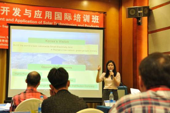 培训班采取课堂授课、现场教学、实地操作与分组研讨汇报相结合的方式进行。课堂授课内容涵盖了太阳能开发利用现状和前景,太阳能光伏光热利用及建筑一体化,太阳能集热发电及电热联用系统,光伏电站勘测设计内容及方法,光伏电站运行管理及多元化运营模式介绍,智能电网,太阳能级硅制备及新型硅太阳能电池制造,太阳能技术和产品、示范项目推广案例介绍等课程。
