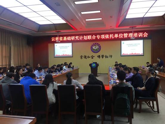 为进一步加强云南省基础研究计划联合专项管理工作,有力促进各联合专项依托单位的项目管理工作规范化、专业化和制度化, 2018年4月25日,省科技厅基础研究处在云南中医学院举办了云南省基础研究计划联合专项依托单位管理培训会。培训会由基础处石晓红调研员主持,基础处张红云处长,云南中医学院孟庆红副院长出席会议并讲话。昆医联合专项、中医联合专项、农业联合专项、地方本科高校联合专项依托单位的专项工作负责人到会作专项工作情况介绍并交流工作经验;昆明理工大学计算机技术应用重点实验室代表讲解了联合专项项目管理信息系统使用和维护方法。各联合专项依托单位和参加单位的近40名代表参加培训并开展交流讨论。