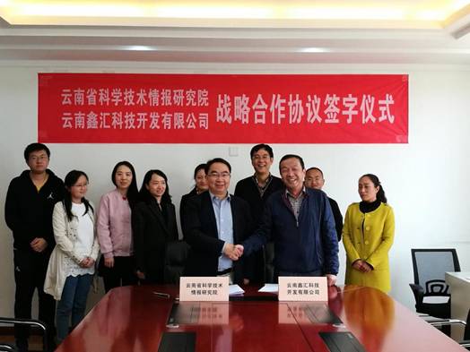 为落实省科技厅党组李松林书记今年3月调研省情报院时指示,情报院要注重情报服务拓展性,充分利用丰富的科技文献资源和各类国际科技合作平台,落实我省打造“绿色能源”、“绿色食品”、“健康生活目的地”三张牌战略,为我省跨越式发展注入高质量发展新动能的要求,2018年4月18日,省情报院与云南鑫汇科技开发有限公司签署战略合作协议。根据协议,双方将在绿色能源、应对气候变化、低碳节能减排、新能源与可再生能源领域,科技成果国际技术转移等项目的研究、咨询、开发和实施跟踪服务等方面展开深度合作。这是情报院充分发挥专业和人才团队优势,体现公益性事业单位服务职能,更好地服务于全省经济、科技、社会和企业发展,不断拓展情报服务对象和内容范围的举措和行动。